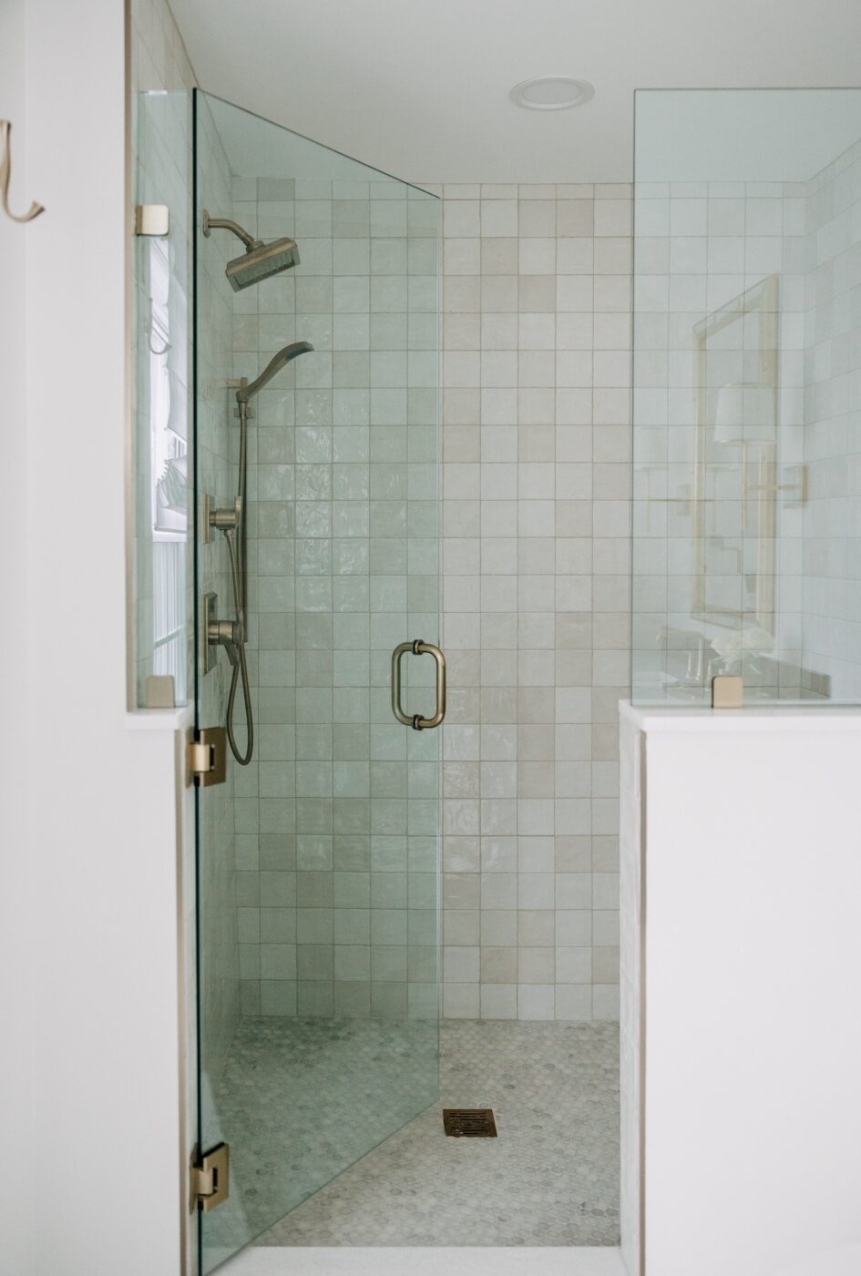 Our clients were ready for an update to their mid-century built colonial in Bloomfield Hills and started in the primary suite with this transitional bathroom remodel. We created a space that was both inviting and elegant by combining the warmth of handmade tiles with the elegance of marble and gold finishes. This space is both stylish and relaxed—just like our clients and we couldn’t be more proud of it.