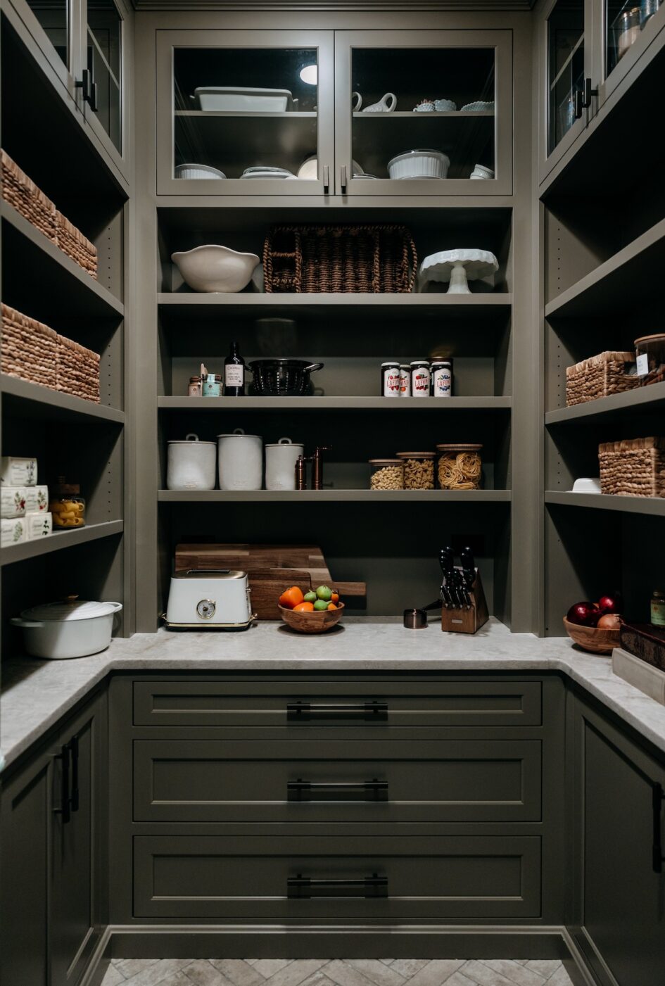 Our homeowners built their dream home on a large parcel of land in Leonard, MI about 10 years ago. The selections they made just didn’t have the timeless elegance they were looking for, so they turned to us. We touched every room in this home, adding built-ins, lighting, wallpaper, custom cabinetry, furniture, window treatments, trim, tile, and flooring. From the nursery for the grand niece on her way, to the executive office and English Pantry, the finishes in this home will endure for decades to come.